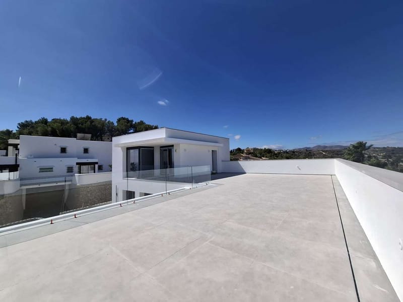 Villa de lujo en la zona de Benimeit, Moraira, en parcela de esquina de 817 m2. Amplias vistas panorámicas, vistas parciales al mar desde la planta baja, y vistas panorámicas completas al mar desde la primera planta. La casa tiene una superficie construida de 233,50 m2 distribuidos en una planta baja con hall de entrada, aseo de invitados, salón, cocina independiente, pasillo, 2 dormitorios y 1 baño. En el exterior, una terraza de casi 100 m2 rodea una piscina infinita de 35 m2 y una barbacoa. A la 1ª planta se accede a través de una escalera donde se encuentra el dormitorio principal con 1 baño en suite y vestidor. Y en el exterior hay una terraza con vistas panorámicas al valle y al mar. En la planta sótano hay un garaje, trastero y un depósito de agua de riego. La villa ha sido diseñada con materiales de alta calidad, incluidos colectores solares en el techo. Está prevista su finalización a finales de 2023.