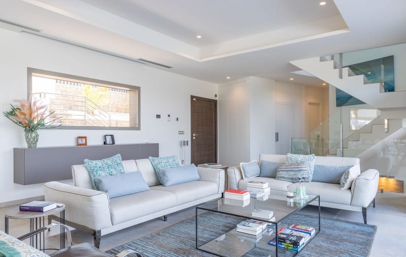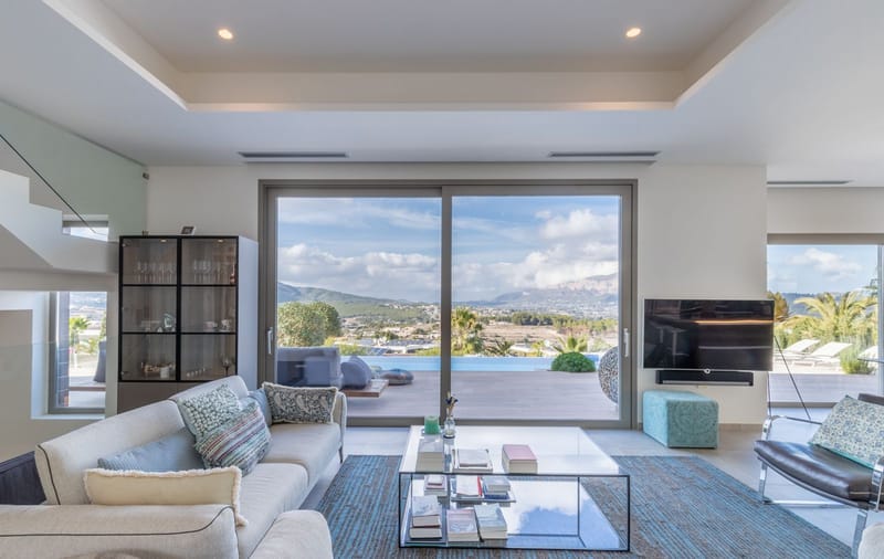 This luxurious 5-bedroom villa is located in Jávea, within an exclusive residential area surrounded by the charm of mountains, sea, and other high-standing villas. Just a short distance from a Golf Club, idyllic beaches, and renowned international schools, this property is perfect for enjoying a full life throughout the year. Built in 2018 to the highest quality standards, the villa is set on a plot of 1,550 m2. It offers generous sunny terraces, an impressive heated infinity pool, an outdoor kitchen with barbecue, a chill-out area with views of the Mediterranean and the charming village of Benitachell, a petanque court, and a lush landscaped garden. The warm and welcoming home is spread over three levels, all connected by an elevator and internal stairs. The ground floor has a spacious living-dining room, a fully equipped kitchen, a guest toilet, and a bedroom with an en-suite bathroom and direct access to the outdoor terraces. The lower level houses a starry sky room used as a cinema, a technical/laundry room, and a double bedroom with an en-suite bathroom, currently set up as a relaxation area with a sauna. The upper floor offers three spacious en-suite bedrooms, all with sea views and equipped with private bathrooms and closets, especially the master suite which includes an open-concept bathroom with a double shower, an elegant bathtub, and a dressing room. The property is equipped with underfloor heating, hot/cold air conditioning through ducts, a Panasonic aerothermal system, a heat pump for the pool, an independent outdoor toilet, parking for two cars, an automatic irrigation system, domotic lighting, an alarm, and a Bose and Sonos indoor/outdoor sound system, ensuring maximum comfort and security. For more information or to arrange a viewing, please contact us.