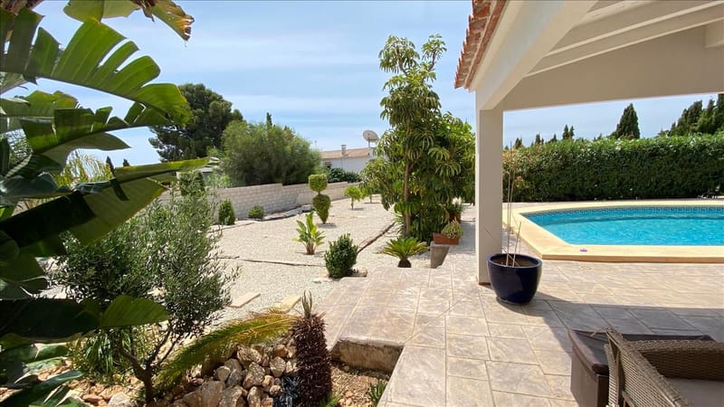 Beautiful villa with sea and mountain views in Carrio, a very quiet urbanization of Calpe, Costa Blanca. The villa is built on a plot of 1610m2 converted into a beautiful garden. The house has an area of 282m2 and comprises: - a large living room with access to the covered terrace and pool, a large independent kitchen, 2 large bedrooms and a bathroom on the ground floor, - one bathroom, a large bedroom and the master bedroom, both with access to a large terrace on the top floor The house is completely renovated in 2020 with high quality materials and finishes. Outside we find beautiful garden that occupies most of the plot, the main terrace with swimming pool, sports area a garage in an independent building.